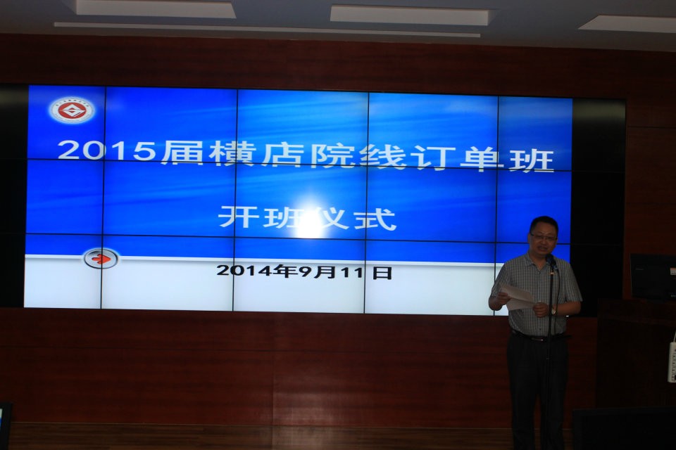 2014年9月11日下午,太阳成城集团tyc234cc官网2015届横店院线订单班开班仪式在光大教学楼9205教室隆重举行。银领公司党总支书记、副经理王祝华,横店电影院线有限公司办公室主任兼人力资源部部长黄刚、办公室主任助理马军、职业培训中心主任姜玉玲等领导出席,横店院线订单班全体同学参加。开班仪式由横店院线订单班班主任孙淑萍老师主持。