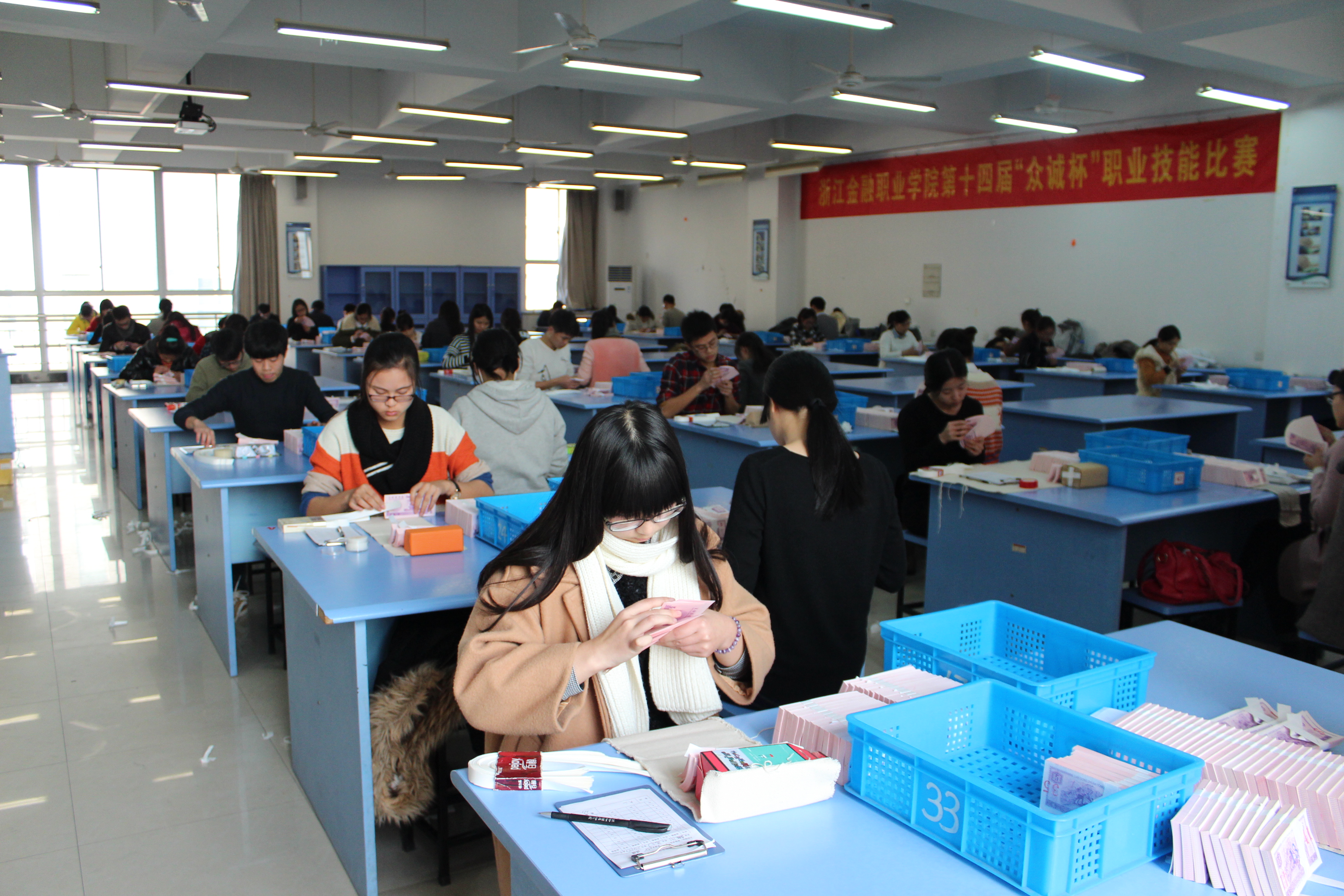 12月24日下午13:30,太阳成城集团tyc234cc官网第十四届“众诚杯”职业技能比赛在金通101银行职业技能训练中心、金通401点钞实训中心拉开帷幕,来自大一、大二、大三和太阳成城集团tyc234cc官网的同学们分别参加了点钞单指单张、点钞多指多张、传票输入、五笔单字和五笔文章共五个项目的比赛。银领公司党总支书记、副经理王祝华亲自到现场指导,杭州江滨职高的老师和同学代表十余人也来到现场观摩比赛。比赛由太阳成城集团tyc234cc官网职业技能教研室主任牟君清、副主任林莉主持。