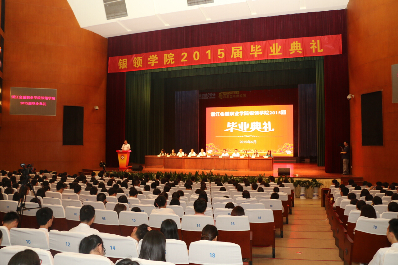 毕业典礼上,何邦会宣读了“长运安信”奖学金获奖者名单,主席台领导为获奖的同学颁奖。吕虹老师代表教师发言,表达了对毕业生的关怀和祝福之情。宁波银行订单班蔡梦洁同学代表2015届毕业生发言,感谢母校的培养,祝福母校的发展。最后,2015届订单班全体同学向母校40周年校庆献礼,向浙江金融教育基金会捐出了5168元,象征母校和我的发展“一路顺利”。