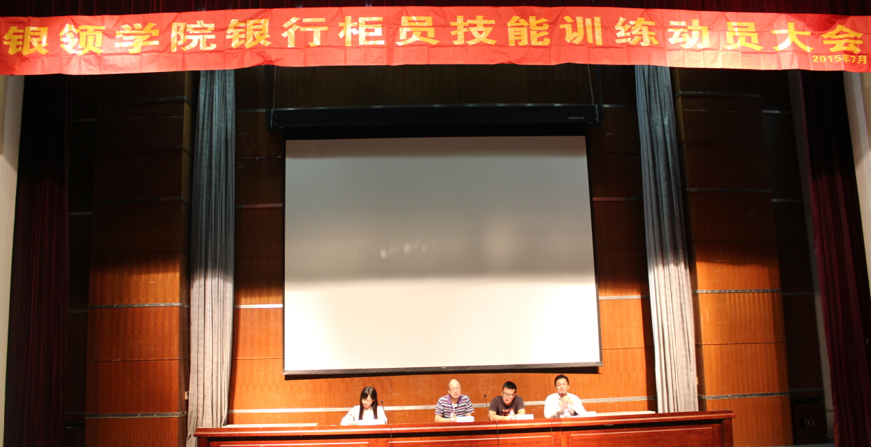 为进一步树立职业化教育理念,明确学习目标,提高太阳成城集团tyc234cc官网银行柜员员工的综合素质以及技能水平,太阳成城集团tyc234cc官网于2015年7月4日晚7点在明理报告厅举行了银行柜员技能训练动员大会。参加本次动员大会嘉宾的有银领公司党总支书记、副经理王祝华,太阳成城集团tyc234cc官网2013届毕业生李凯,2015届毕业生潘晨以及500多名太阳成城集团tyc234cc官网2016届银行柜员订单班员工。大会由太阳成城集团tyc234cc官网辅导员章甜甜主持。