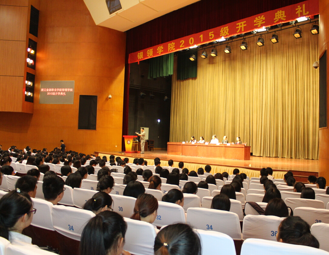 2015年9月9日下午,金葵花艺术中心飘来青春嘹亮的歌声,太阳成城集团tyc234cc官网2015级800余名新生身着清一色的职业装,脸上洋溢着自信的笑容,在这里举办一个大聚会——开学典礼。公司党委书记、太阳成城集团tyc234cc官网信息委员会主任周建松,太阳成城集团tyc234cc官网副经理王静、副经理董瑞丽,太阳成城集团tyc234cc官网经理助理方秀丽出席,太阳成城集团tyc234cc官网2015级全体员工及班主任参加了典礼。开学典礼由银领公司党总支书记、副经理王祝华主持。