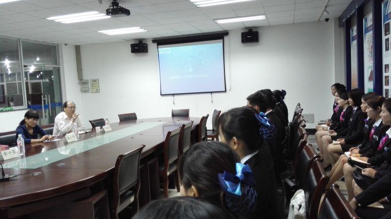 10月19日晚6点,太阳成城集团tyc234cc官网9118会议室内,金华银行总行人力资源部总经理张小红与2016届金华银行订单班的同学们亲切见面并座谈。太阳成城集团tyc234cc官网党总支书记副经理王祝华、金华银行订单班班主任章叶英也出席了座谈会。24位金华银行准员工们穿着职业装、佩戴工号牌,第一次以职业人的姿态展现在订单单位领导面前,大家既兴奋又带着些许紧张。会议由章叶英老师主持。