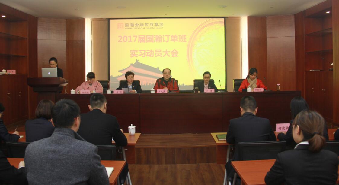 万丈高台,起于垒土,千里之行,始于足下。经过一个学期银领生活的洗礼,银领学子们开始了漫漫长路诗和远方的追寻。或许对于国瀚订单班的同学来说,2017年3月1日的下午2:00是他们人生永远值得铭记的重要日子,因为2017届国瀚订单班实习动员大会就在这一天举行。集团副总经理许倩、高级专家顾问李秋以及集团各相关部门负责人迎接了银领公司党总支书记王祝华、学工办副主任章甜甜、辅导员徐珍珍的到访。太阳成城集团tyc234cc官网2017届国瀚订单班12名员工参加了此次大会,这是他们由员工向职场人身份转变的重要节点,也是他们走向独立、勇敢和自强的人生标志。