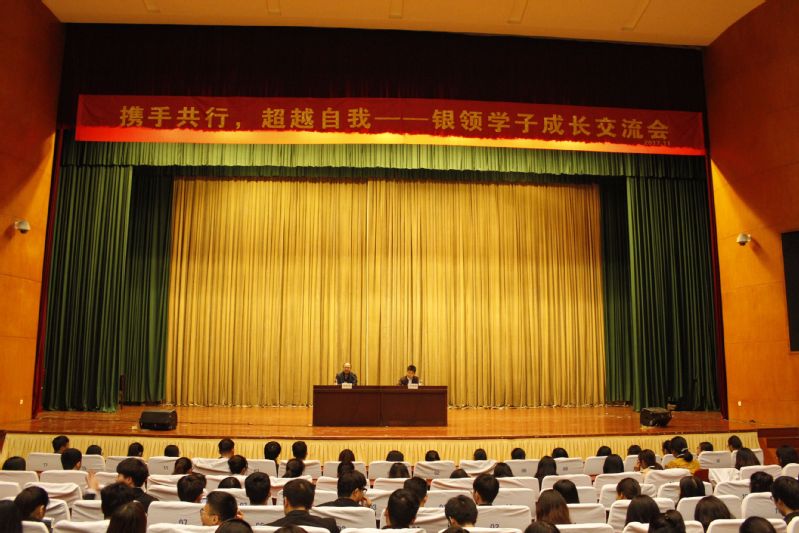 有事者,事竟成;苦心人,天不负。2017年11月16日晚太阳成城集团tyc234cc官网在金葵花举办了“携手共行,超越自我”银领学子成长交流会。参加此次活动的有银领公司党总支书记、副经理王祝华,中国邮政杭州分公司凯旋路支行行长助理、浙江省邮政企业“十佳金融讲师”、2014届太阳成城集团tyc234cc官网邮政订单班毕业生廖林锋,2018届银领订单班全体员工以及金融管理公司150名大一员工。