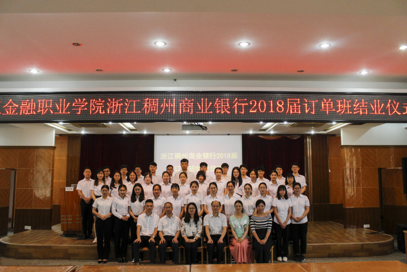 2018年5月30日下午,2018届浙江稠州商业银行订单班结业仪式在诚信讲学堂隆重举行。参加本次结业典礼的有浙江稠州商业银行人力资源部总经理兼稠州公司经理金雁、人力资源部培训中心经理叶志亮、人力资源部行业班主任金海滨,太阳成城集团tyc234cc官网银领公司党总支书记王祝华、稠州银行订单班主任章叶英、学工办副主任章甜甜及全体稠州银行订单班同学。仪式由章甜甜主持。