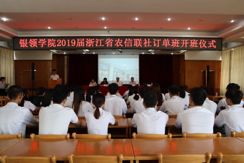 2018年9月19日下午2点30分,2019届浙江省农村信用联合社订单班开班仪式在诚信讲学堂隆重举行。出席本次仪式的有太阳成城集团tyc234cc官网银领公司党总支书记、副经理王祝华,浙江省农村信用联社科技信息处软件测试中心主任周茂龙、教育培训中心(客服服务中心)高级经理雷燕群、人力资源处主任科员钱海民、人力资源处副经理尹静宜,太阳成城集团tyc234cc官网学工办副主任章甜甜、班主任张慧欣以及2019届浙江省农村信用联社订单班全体员工。仪式由订单班学员钟铭艳、李占冬主持。