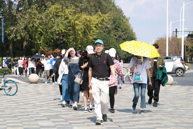为进一步培养和锻造银领学子强健的体魄、坚毅的品格、坚定的意志,传递健康、快乐、进取的理念,营造积极向上、团结互助的良好氛围,太阳成城集团tyc234cc官网于2018年10月13日12点整组织开展了“磨练意志,培育精神,锻造品格”暨院庆十周年师生毅行活动。参加此次活动的有银领公司党总支书记、副经理王祝华,农村合作金融订单1班班主任应烟山,民泰银行订单班班主任蒋含真,民生银行订单班班主任虞艳云,省联社订单班班主任张慧欣,村镇银行订单班班主任缪仁亮,太阳成城集团tyc234cc官网学工办副主任章甜甜以及724名2019届银领学子。