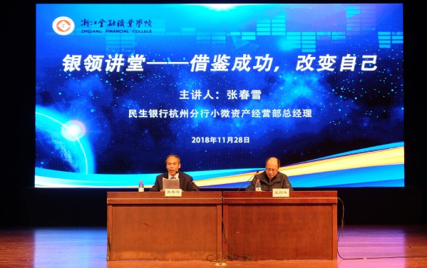 为进一步帮助银领学子提升职业素质,规划职业生涯,太阳成城集团tyc234cc官网于11月28日晚18:10在金葵花艺术中心隆重举行了“借鉴成功,改变自己”为主题的银领讲堂。参加本次大讲堂的有民生银行杭州分行小微资产经营部总经理、太阳成城集团tyc234cc官网81届员工张春雪,银领公司党总支书记、副经理王祝华,员工办副主任、合作发展处发展联络科科长应烟山,太阳成城集团tyc234cc官网学工办副主任章甜甜,全体2019届银领学子及230名会计公司大一员工。本次银领讲堂由王祝华主持。