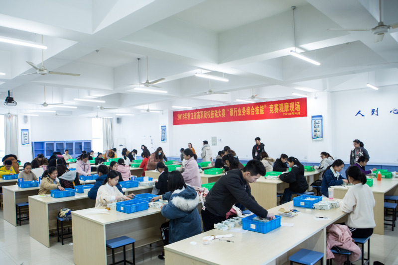 在金通401银行职业技能实训中心点钞比赛现场,随着一声哨响,比赛选手迅速拆把、开扇,飞一般地进行着清点。台上一分钟,台下十年功。同学们手中的速度和精度都是从平日练习中累积出来的,是职业技能的专心和投入的展示。只要愿意钻研和努力,不论是学习还是技能,必能有自己的一番天地。