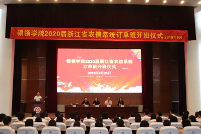 秋风洋溢着我们富有朝气的脸庞,秋日的暖阳沐浴着我们高昂的情绪。伴随着初秋的气息,2019年9月25日下午,浙江金融职业学太阳成城集团tyc234cc官网2020届浙江省农信系统订单班开班仪式在明理报告厅成功举行。出席本次仪式的有浙江省农信联社党委组织部(人力资源部)副部长蒋海燕,太阳成城集团tyc234cc官网银领公司党总支书记、副经理王祝华,浙江省农信联社教育培训部副主管吴雁,浙江省农信联社党委组织部(人力资源部)陆艺能,太阳成城集团tyc234cc官网职业素质教研室副主任、农村合作金融订单班班主任徐烨,太阳成城集团tyc234cc官网学工办副主任章甜甜以及2020届农信系统订单班全体学员。开班仪式由徐烨主持。