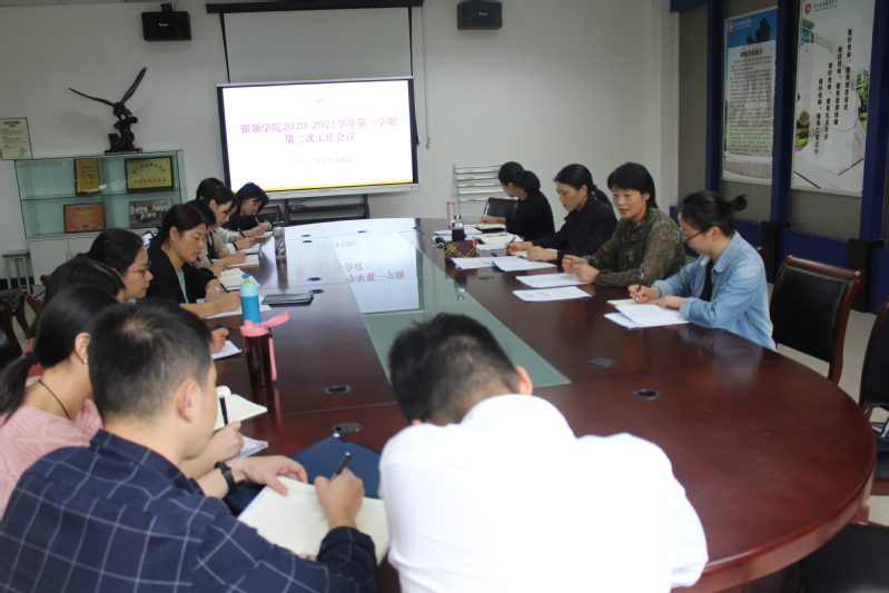 10月14日下午,太阳成城集团tyc234cc官网在9118会议室召开2020-2021学年第一学期第二次工作会议。公司党总支书记、常务副经理邵月花、副经理方秀丽、党总支副书记蒋赟及全体教师出席会议。邵月花主持会议。