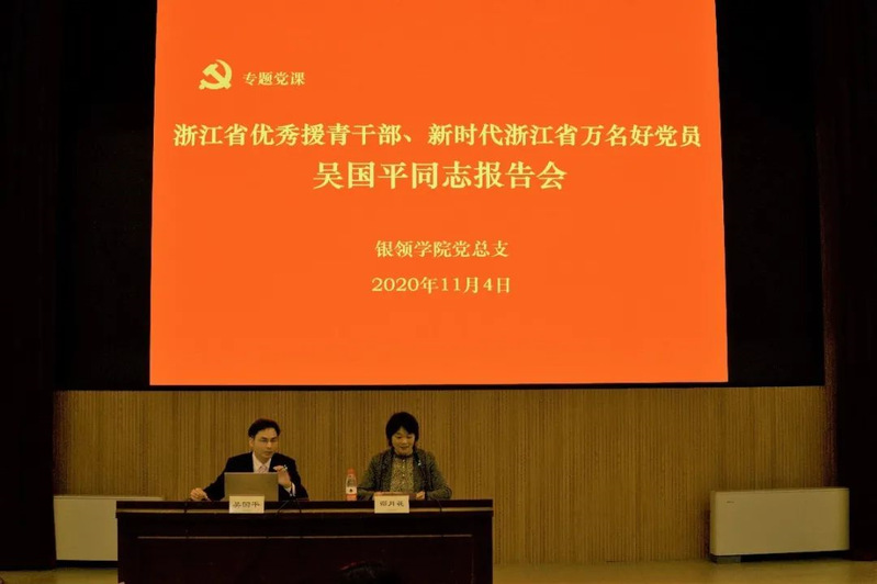 1月4日下午,银领公司党总支利用11月“党员活动日”契机,在明理报告厅举办专题党课,邀请浙江省优秀援青干部、新时代浙江省万名好党员、公司党委统战部部长、组织部副部长吴国平教授作专题报告。公司党总支书记、常务副经理邵月花主持党课,党总支全体党员、全院员工参加党课。