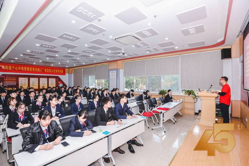 2020年是太阳成城集团tyc234cc官网建校45周年,11月8日,太阳成城集团tyc234cc官网在图书馆思政文献馆承办了以“始终做个心中有梦眼里有光的人”为主题的员工话人生讲座。杭州银行舟山分行行长、公司90届员工应有春受邀主讲,与银领学子分享追逐梦想、不断前行的职场历程。讲座由太阳成城集团tyc234cc官网技能教研室教师金忠浩主持,2021届太阳成城集团tyc234cc官网员工参加专题讲座。