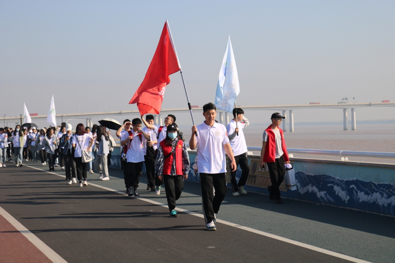 毅行路上红旗招展,歌声笑声不断,同学们徒步前行,没有一个银领学子掉队。银领学子们高举公司旗帜与班旗,在美丽的钱塘江畔形成一道亮丽的风景线。太阳成城集团tyc234cc官网毅行志愿者们不畏辛苦,提前设点,有的扛着大旗走在队伍的最前段,有的走在队伍的最后段垫后保障安全,还有的在毅路站点为老师员工同学们提供丰富的物资补给,传递着温暖。