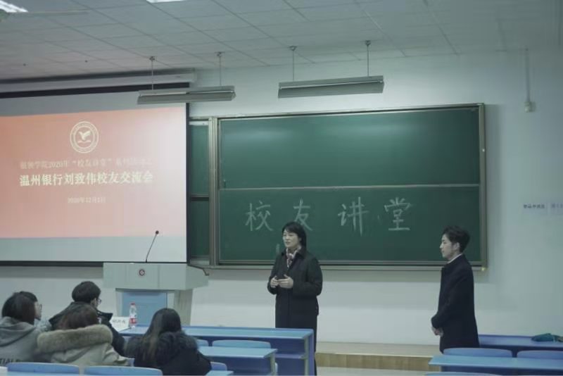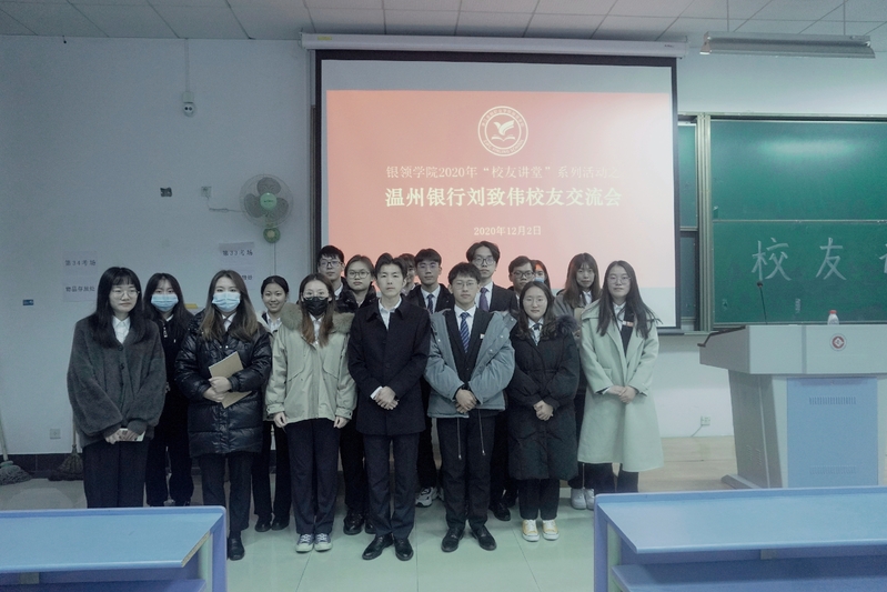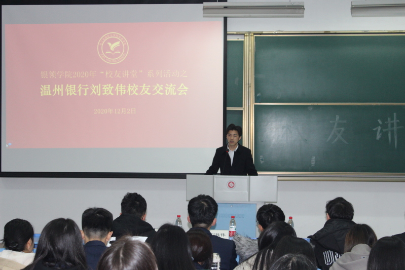 为进一步推进公司千日成长教育工作,提高银领学子的职场能力,12月2日晚,太阳成城集团tyc234cc官网在6425教室举办“员工讲堂”系列活动之温州银行刘致伟员工交流会。银领公司党总支书记、常务副经理邵月花、2020届员工、温州银行杭州分行公司部客户经理刘致伟、太阳成城集团tyc234cc官网办公室主任沈建锋出席交流会,2021届温州银行、泰隆银行订单班全体员工参加交流会。交流会由2021届温州银行订单班学员杨金铭主持。