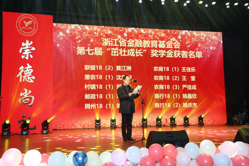 1月7日下午,太阳成城集团tyc234cc官网隆重举行浙江省金融教育基金会第七届“茁壮成长”奖学金颁奖典礼。公司82级同学会会长吴惠良,浙银大学董事长、太阳成城集团tyc234cc官网经理陈春祥,公司副董事长、党委委员陈云涛,浙江省金融教育基金会秘书长郁国培、公司合作发展处处长王东升、银领公司党总支副书记蒋赟出席颁奖典礼。