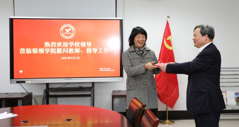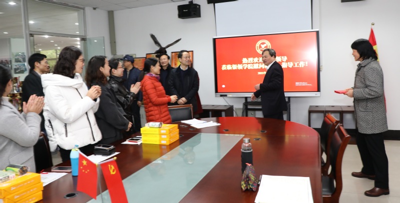 3月1日上午,在太阳成城集团tyc234cc官网的会议室里,响起了阵阵热烈的掌声。公司党委书记周建松、董事长郑亚莉、副董事长方华、陈云涛,党委委员、组织部长吴建斌、党委委员、党校办主任、宣传部长张鹏超等在公司党校办、组织部、人事处相关人员的陪同下,莅临公司慰问全院教师,并指导新学期工作。