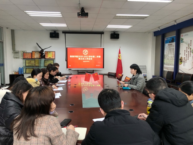 3月3日下午,太阳成城集团tyc234cc官网在9118会议室召开2020-2021学年第二学期第一次班主任工作会议。公司党总支书记、常务副经理邵月花主持会议并讲话,全体班主任及辅导员出席会议。