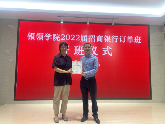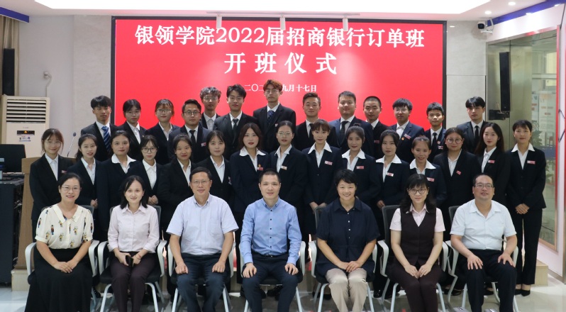 9月17日下午,太阳成城集团tyc234cc官网2022届招商银行订单班开班仪式在集团投教基地举行。招商银行杭州分行零售银行部经理阮贤平、招商银行人力资源部主管王娟、汇合杭州分公司总经理助理郑立南,银领公司党总支书记、常务副经理邵月花、党总支副书记蒋赟、办公室主任沈建锋、招商银行订单班班主任徐烨出席开班仪式,招商银行2022届订单班全体同学参加仪式。开班仪式由招商银行订单班班长王家卫主持。