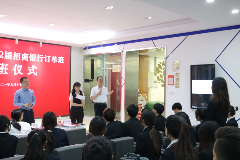 邵月花代表太阳成城集团tyc234cc官网对招商银行各位领导表示欢迎和感谢,对进入招商银行订单班的同学们表示祝贺。她希望同学们加强学习规划,提高自控能力;珍惜订单机会,坚定奋斗决心;打好技能基础,提高敬业精神;心存感恩之情,学成回报社会。