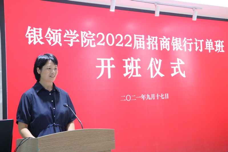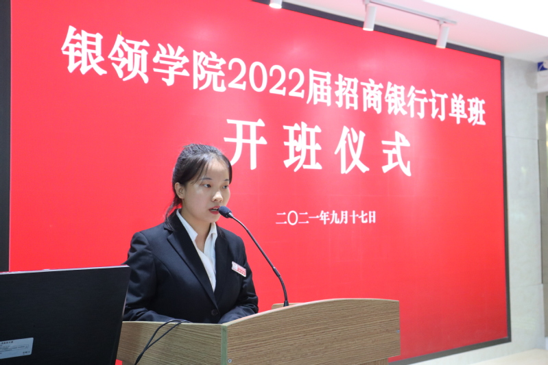 招商银行订单班员工代表张晨向招商银行和公司领导表示感谢。她表示全体同学一定不会辜负领导老师的厚望,会在银领学习的一年中,提高沟通表达能力以及自身的综合素质,以更优秀的状态进入招商银行工作。