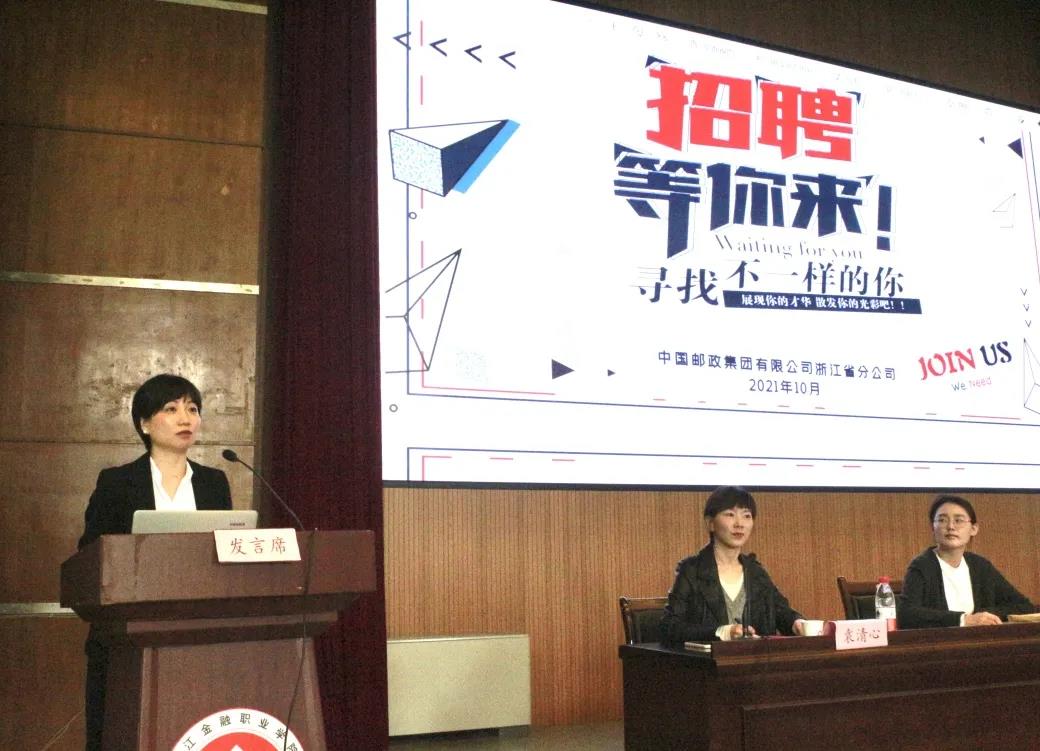 刘娅对同学们顺利进入中国邮政集团有限公司浙江省分公司订单班表示祝贺,并肯定了同学们的精神面貌。她介绍了中国邮政集团有限公司的发展历程及为大家提供的学习平台,希望同学们守正笃实,久久为功;终身学习,提升学历;保持热情,团结协作;适应逆境,勇往直前。
