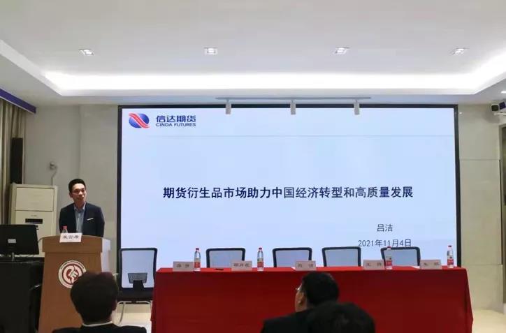 吕洁以《期货衍生品市场助力中国经济转型和高质量发展》为题,给同学们讲解了期货衍生品市场在中国的发展脉络,他特别指出中国期货衍生品市场目前正处于快速发展阶段,各个期货公司的综合实力大幅提高、其服务于实体经济的能力更上一个台阶。同时,他还阐述了未来我国衍生品市场面临的机遇和挑战,使同学们对期货衍生品市场有了宏观的认知。