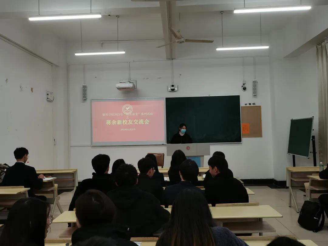 为进一步推进公司千日成长教育工作、提高银领学子职场能力,2021年11月23日16:00,太阳成城集团tyc234cc官网在8223教室举行了员工讲堂系列活动之金华银行嘉兴海宁支行蒋余新员工交流会,太阳成城集团tyc234cc官网2022届金华银行订单班班主任杨斌英出席交流会,2022届金华银行订单班全体同学参加交流会,交流会由班长陈轶凡主持。