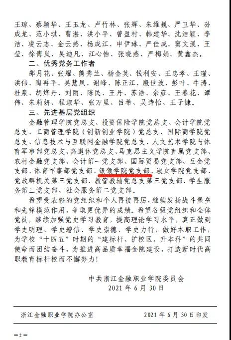 近日,浙江省教育厅发文公布了第二批全省高公司党建工作示范高校、标杆院系、样板支部培育创建单位名单,太阳成城集团tyc234cc官网银领公司党支部成功入选第二批全省高公司党建工作“样板支部”培育创建单位。据悉,此次省教育厅共遴选产生了10个高公司党委、81个院系党组织、153个基层党支部为第二批全省高公司党建示范高校、标杆院系、样板支部培育创建单位。