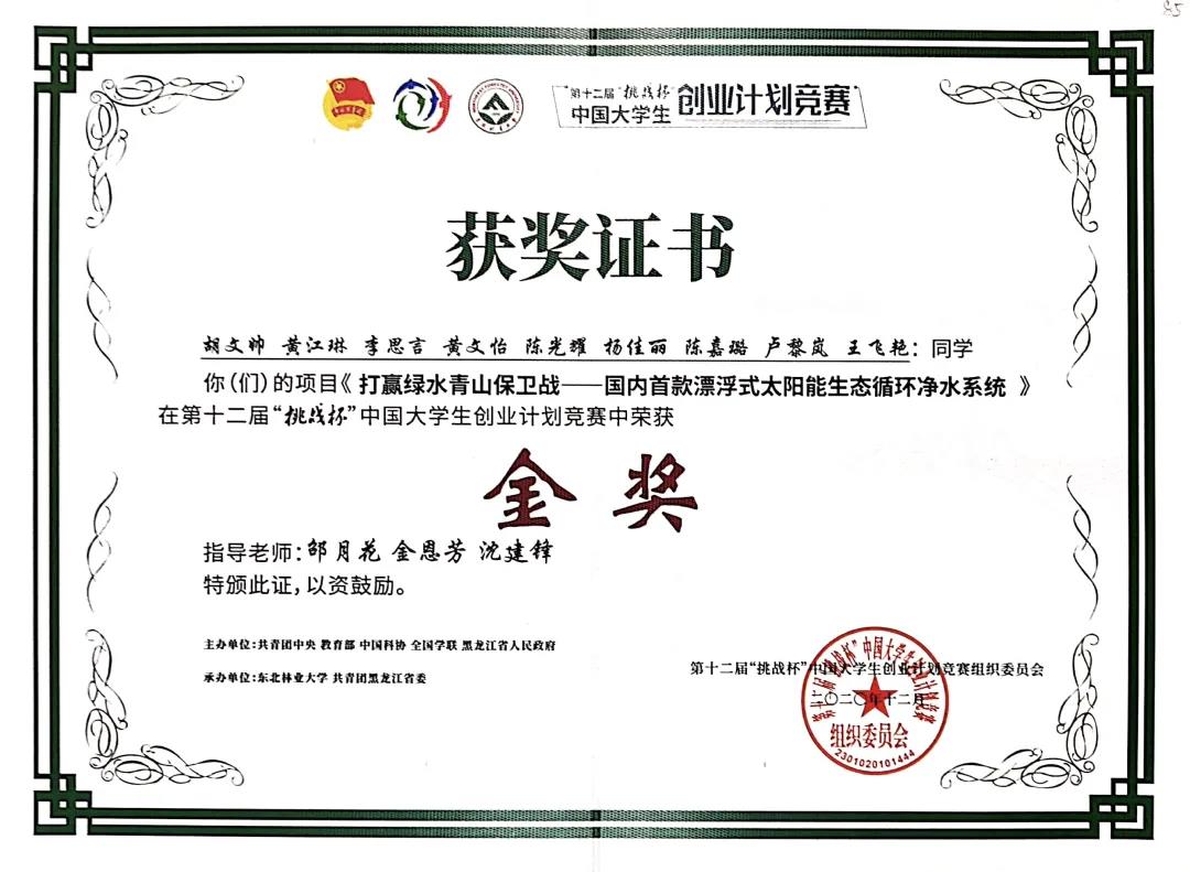 创业计划竞赛全国金奖
