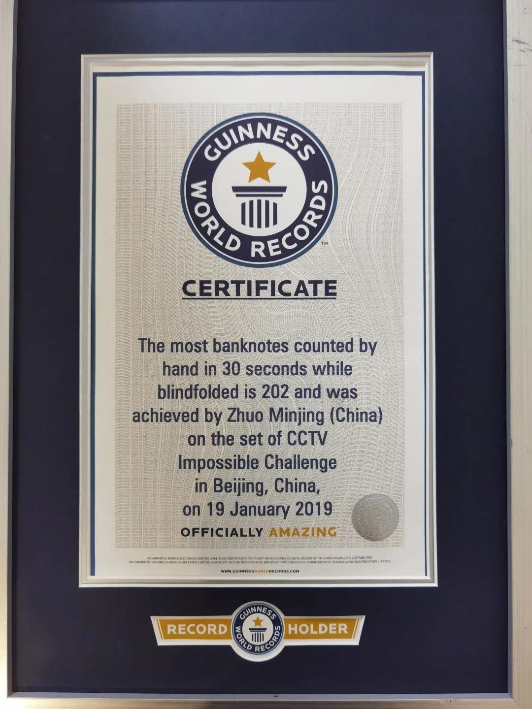 手动点钞 202 张 创吉尼斯世界纪录