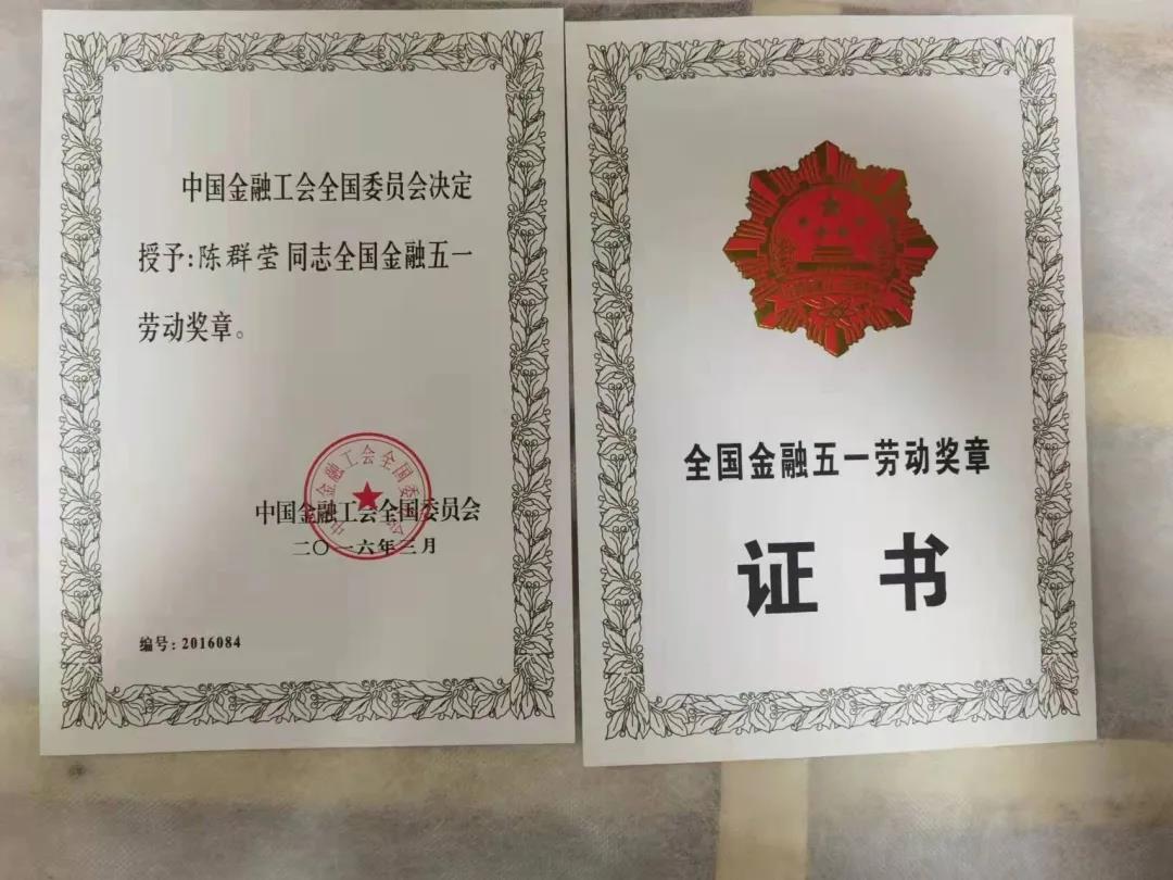 获全国金融五一劳动奖章