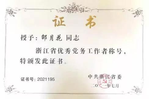 获浙江省优秀党务工作者