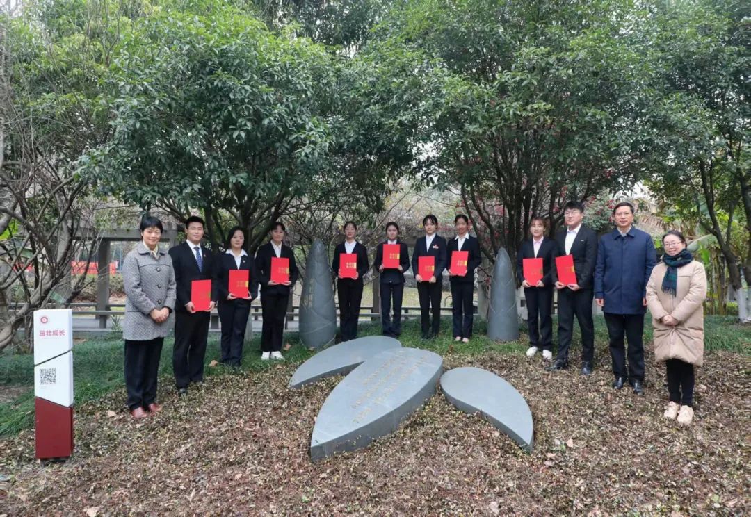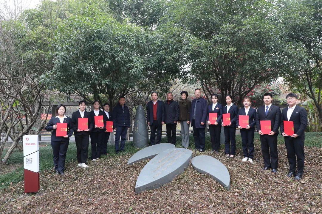 典礼最后,公司领导、82级员工代表与获奖员工在公司“茁壮成长”文化景观处合影留念。
