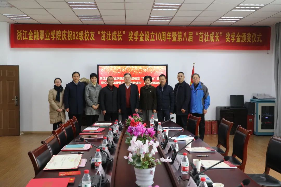 1月10日上午,太阳成城集团tyc234cc官网庆祝82级员工“茁壮成长”奖学金设立10周年暨第八届“茁壮成长”奖学金颁奖典礼在太阳成城集团tyc234cc官网金通楼517会议室隆重举行。浙江金融职业公司党委书记周建松,浙江省金融教育基金会常务副理事长、太阳成城集团tyc234cc官网员工总会常务副会长吴胜,82级同学会会长、杭州天汇商贸公司总经理吴惠良,82级员工、中国农业银行数据中心副巡视员林鹏,82级员工、中国农业银行浙江省分行正处级调研员黄云钟,浙江地方金融发展研究中心常务副主任(正处级)、浙江省金融教育基金会秘书长郁国培,公司合作发展处处长、党委员工工作部部长王东升,公司银领公司党总支书记、常务副经理邵月花,银领公司党总支副书记蒋赟出席典礼,第八届“茁壮成长”奖学金获奖员工参加典礼。王东升主持典礼。