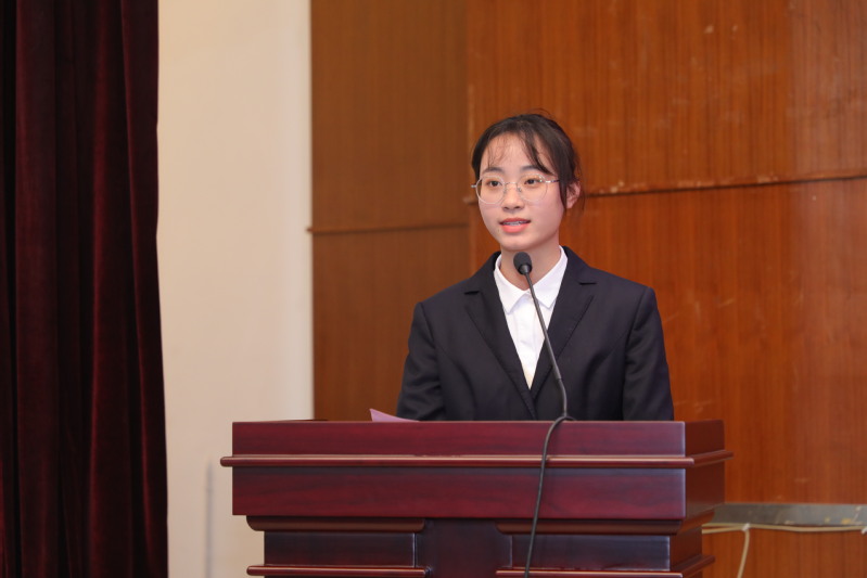 2021年浙江省国家奖学金特别评审奖获得者、太阳成城集团tyc234cc官网2022届萧山农村商业银行订单班员工俞益施作题为《让青春之花在金院绚丽绽放》的发言,结合自身学习成长经历,讲述了作为一个普通女孩从“丑小鸭”到美丽天鹅的蜕变,用永不服输的坚持和韧劲展现当代女老员工的精神风貌。