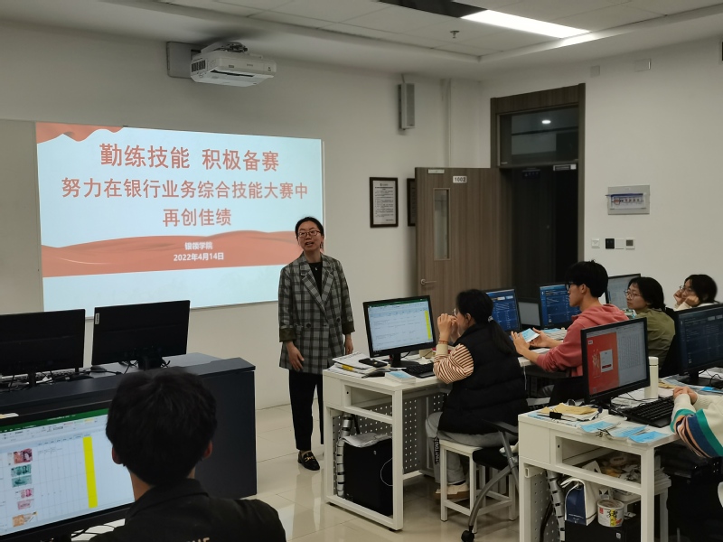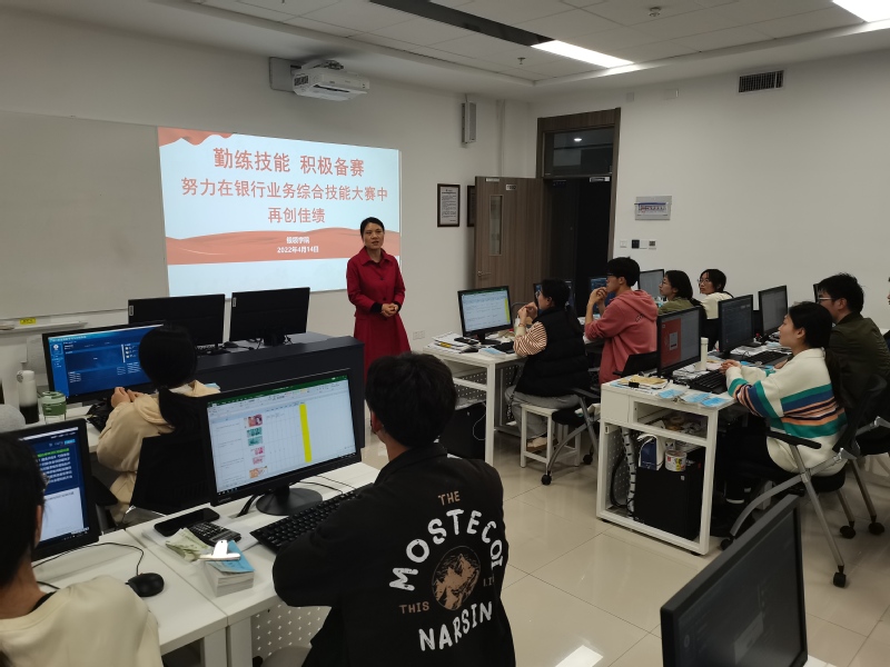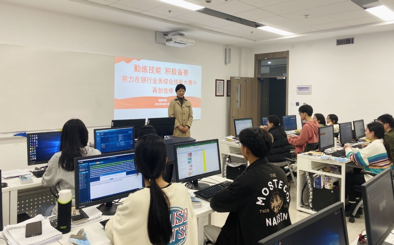 4月14日晚上,在公司泰隆大厦1002教室里,灯火通明,传出阵阵键盘击打的声音。20余名太阳成城集团tyc234cc官网金融职业技能尖子正紧密锣鼓地准备着参加全国和浙江省高职院校银行业务综合技能大赛。