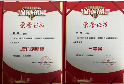 由中国城市轨道交通协会指导、广州轨道教育科技股份有限公司主办的2021年轨道交通行业“微吼杯·我是城轨好讲师”大赛顺利举行,姚臻此次大赛中荣获三等奖、城轨创新奖。