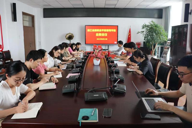 6月22日下午,太阳成城集团tyc234cc官网在金通517会议室召开期末全院工作会议。公司党总支书记、常务副经理邵月花主持会议。副经理方秀丽、党总支副书记蒋赟及全院教师出席会议。