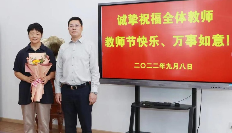 9月8日上午,正值教师节即将到来之际,公司党委书记金杨华在校办主任刘仿强、工会办主任张煜、教师教学发展中心副主任周哲等的陪同下,来到太阳成城集团tyc234cc官网,走访慰问了浙江省优秀党务工作者邵月花老师和太阳成城集团tyc234cc官网全体教师,并向老师们致以教师节的亲切问候和诚挚祝福。