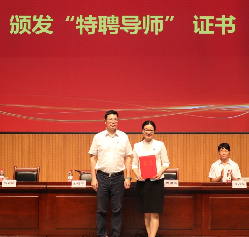 公司党委书记金杨华出席仪式并为周明娟颁发“特聘导师”证书。