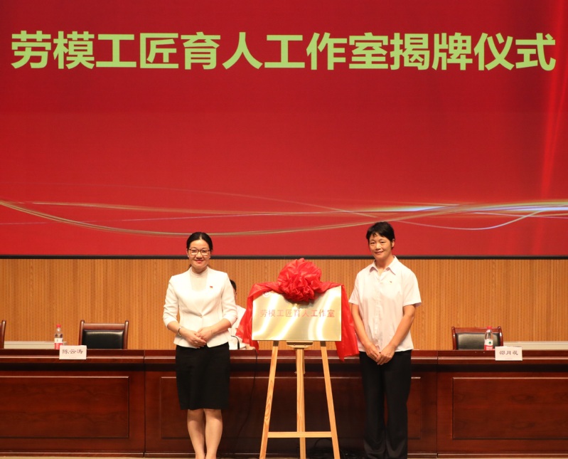 银领公司党总支书记、常务副经理邵月花与周明娟共同为“劳模工匠育人工作室”揭牌。