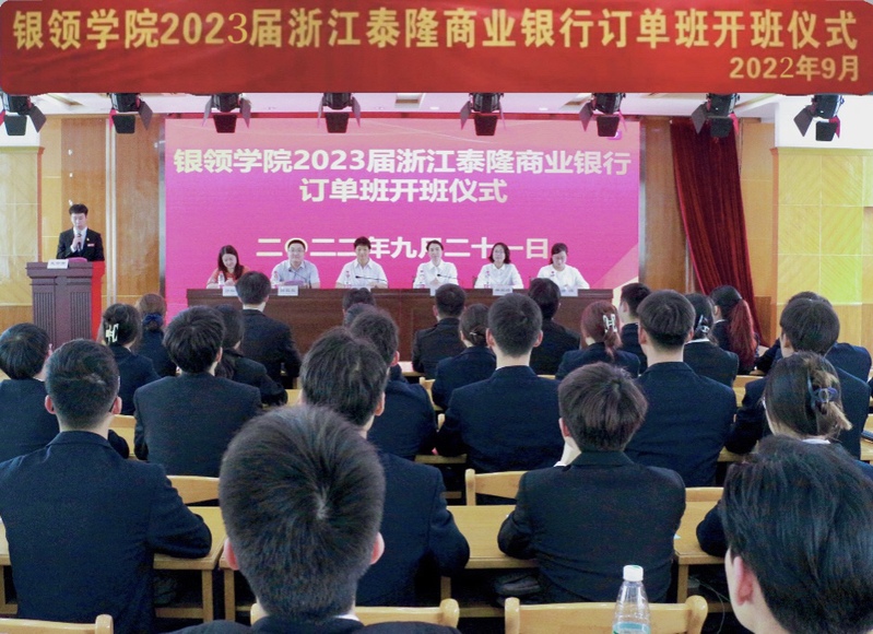 9月21日下午,太阳成城集团tyc234cc官网2023届浙江泰隆商业银行订单班开班仪式在诚信讲学堂顺利举行。浙江泰隆商业银行人力资源部副总经理林丽、苏州常熟辛庄支行行长、优秀员工薛良良、浙江泰隆商业银行人力资源部2023届订单班负责人林瑜璠、太阳成城集团tyc234cc官网银领公司党总支书记、常务副经理邵月花、2023届浙江泰隆商业银行客户经理订单班班主任孙淑萍、服务经理订单班班主任徐烨、太阳成城集团tyc234cc官网学工办主任章甜甜、辅导员杨斌英出席开班仪式,2023届浙江泰隆商业银行订单班全体学员参加仪式。开班仪式由2023届浙江泰隆商业银行订单班员工张俊皓主持。