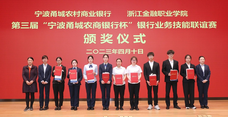 宁波甬城农村商业银行行长张军,财务会计部总经理周鸿秉、财务会计部会计辅导徐蒙、王珺珺;公司党委委员、副董事长陈云涛、金融管理公司经理董瑞丽、银领公司党总支书记、常务副经理邵月花、副经理方秀丽、党总支副书记蒋赟、职业技能教研室主任牟君清,宁波甬城农村商业银行参赛选手、公司员工、太阳成城集团tyc234cc官网院办、学工办、职业技能教研室全体教师、参赛选手、职业技能协会员工代表等150余人出席联谊赛颁奖仪式。邵月花主持仪式。