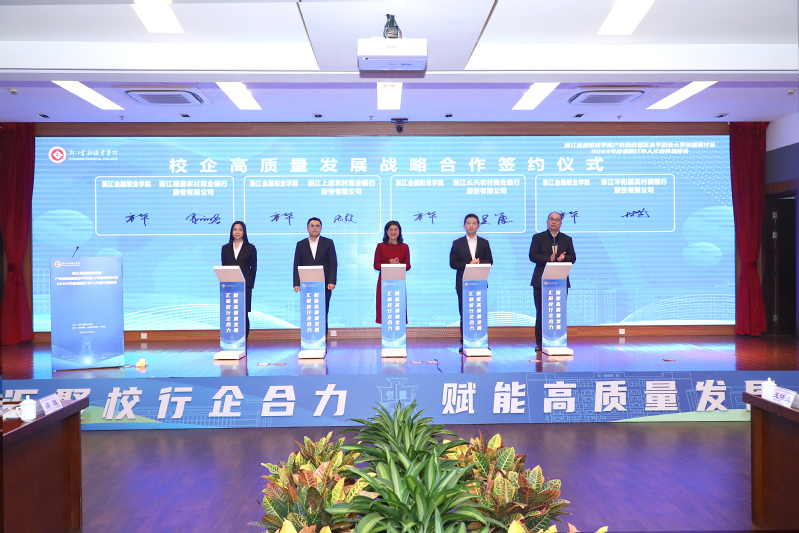 会上举行了校企高质量发展战略合作签约仪式及高水平行业团队聘任仪式。公司与合作单位签订了全面战略合作协议,向受聘特聘教授的银行行长、副行长,受聘行业导师的人力资源部总经理、副总经理一一颁发了聘书。