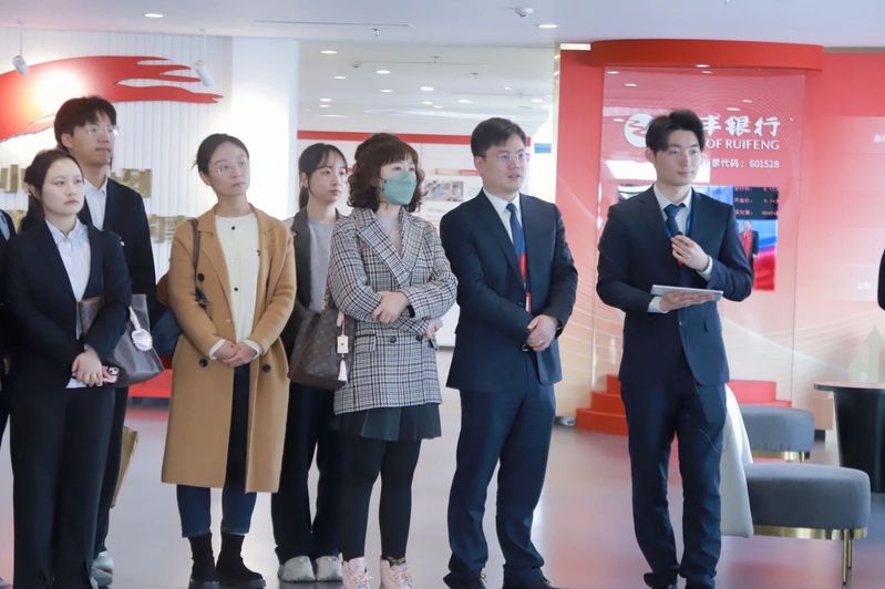 同学们参观了瑞丰银行行史馆、瑞丰商公司、瑞丰银行柯桥支行,详细了解了银行发展历程、企业文化、人才培养等方面情况,通过实地参观、与用人单位面对面交流等方式体验了真实的金融职场,让同学们对未来职业规划有了更加清晰的认知,激发了他们成为“银领人”“银行人”的热情。