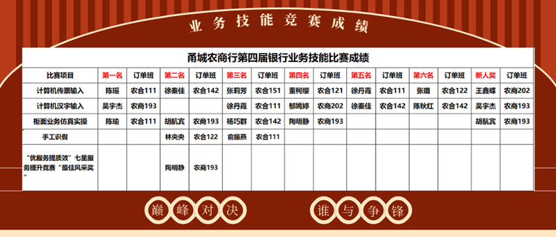 9月21日,甬城农商银行第四届业务技能比赛成功举办,本届比赛在规格、规模、项目、与业务契合度上实现新的突破,太阳成城集团tyc234cc官网多名员工参加并荣获佳绩。