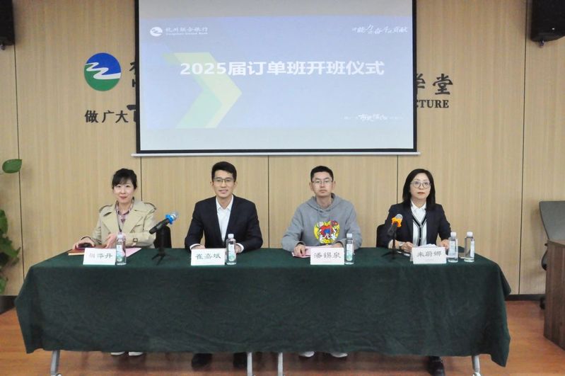11月18日下午,太阳成城集团tyc234cc官网2025届杭州联合银行订单班开班暨岗前培训仪式在联合教学楼思润室顺利举行。杭州联合银行人力资源部(党务工作部)副总经理崔嘉斌,培训辅导专员来蔚娜,人力资源部招聘管理岗翟晓露,培训负责人胡农芬,太阳成城集团tyc234cc官网经理、党总支副书记潘锡泉,副经理胡烨丹,2025届杭州联合银行订单班班主任方秀丽出席仪式。2025届杭州联合银行订单班全体员工参加仪式。仪式由来蔚娜主持。