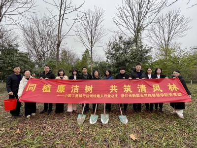 会后,双方党支部党员前往钱塘区沿江景观公园共植“廉洁树”。
