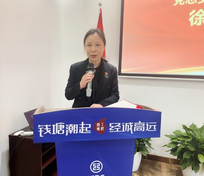 徐维代表中国工商银行杭州钱塘支行党总支对银领公司党支部一行的到来表示热烈欢迎。她指出,此次党建联建是双方积极响应党中央加强基层党建工作的号召,推动金融行业与教育领域深度融合、协同共进的重要举措。她希望通过党建联建,在资源共享、优势互补的基础上,不断加强校企合作,推动人才培养迈上新台阶,为金融行业发展及钱塘地方经济建设做出更大贡献。